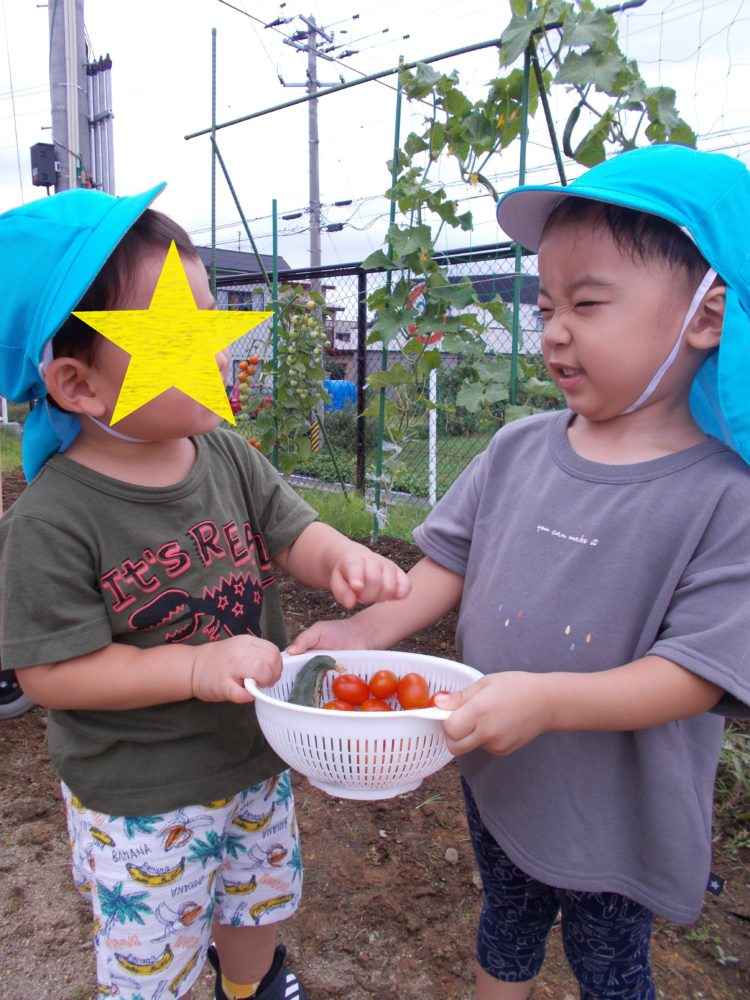 お盆期間中お休みしている子もいたのでお友だちがみんな揃うのは久しぶり。休み明けお家の人が恋しくなちゃうかな?と心配しながら、みんなが登園するのを待っていましたが、ニコニコ笑顔で登園してくれ安心しました。