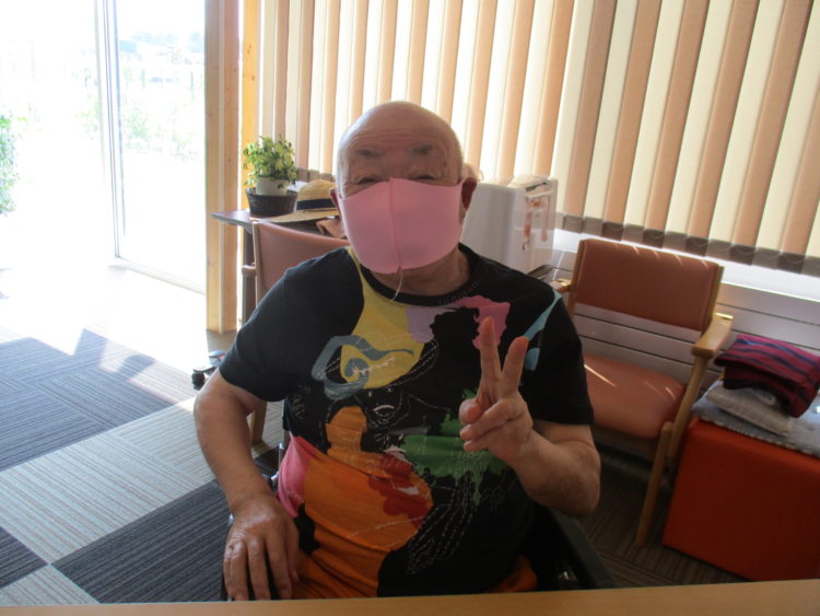 K様、ピンクのマスクです。