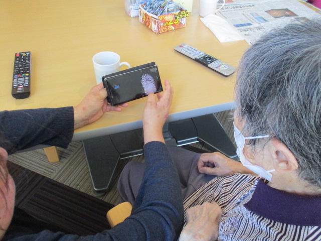 K職員が撮影してくれた花火をN様と一緒に見ました。