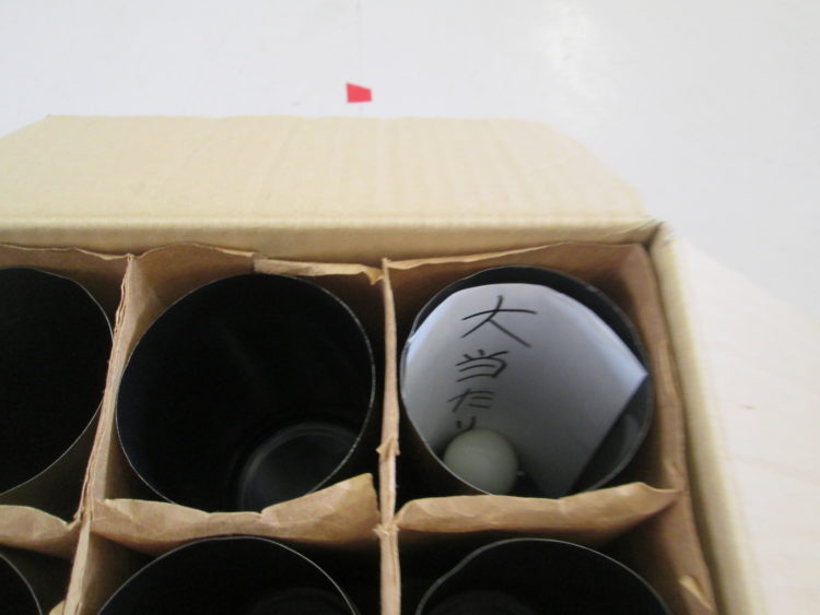 今日はピンポンカーンゲームの日。ピンポンカーンゲームとは筒の中にピンポン玉を入れるゲームです。今回はなんと………大当たりが出ました。なんとS.M様狙いを定めて、入ったところは?一発逆転の大当たり。みごとなコントロール……..さすがです。