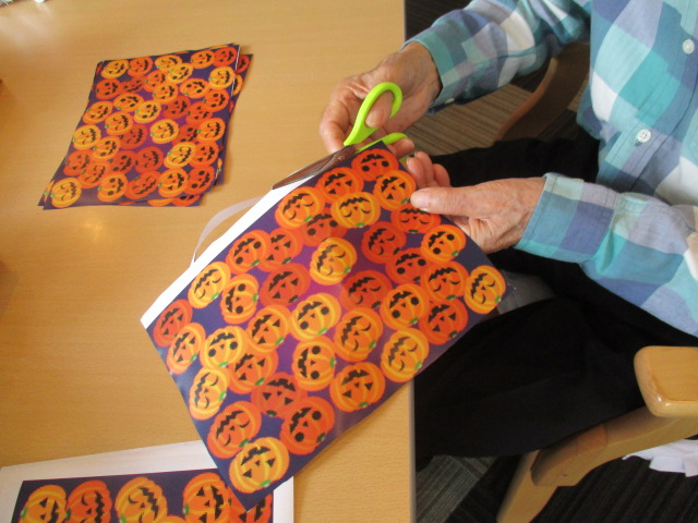 本日は来月のハロウィン向けて飾り付けの切り絵を行いましたので様子をお伝えいたします。