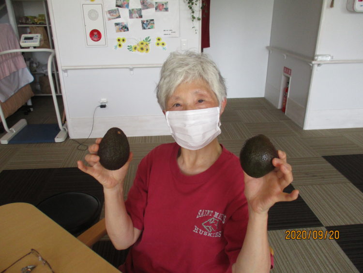 アボカドを持ったA様。マスクをしていてもお綺麗ですよ!