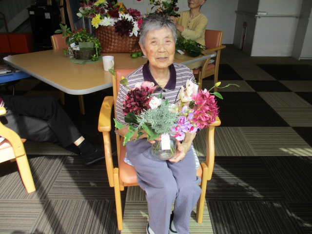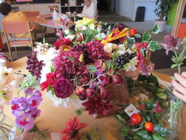 本日は昨日の余暇で行いました「フラワーアレンジ」の様子をお伝えいたします。