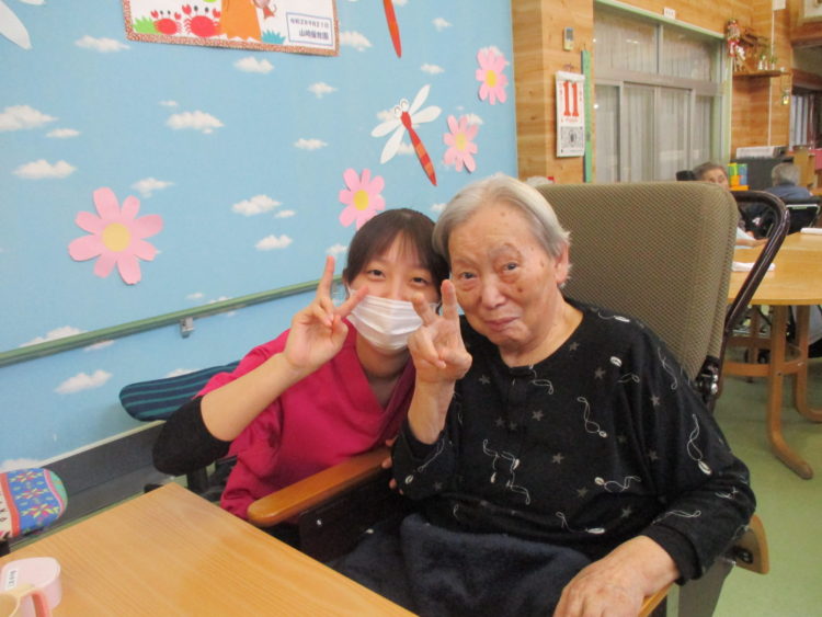 「おいしいですか?」と伺うと、「はいっ^^♪」と微笑みながら、ピースをしてくれました!