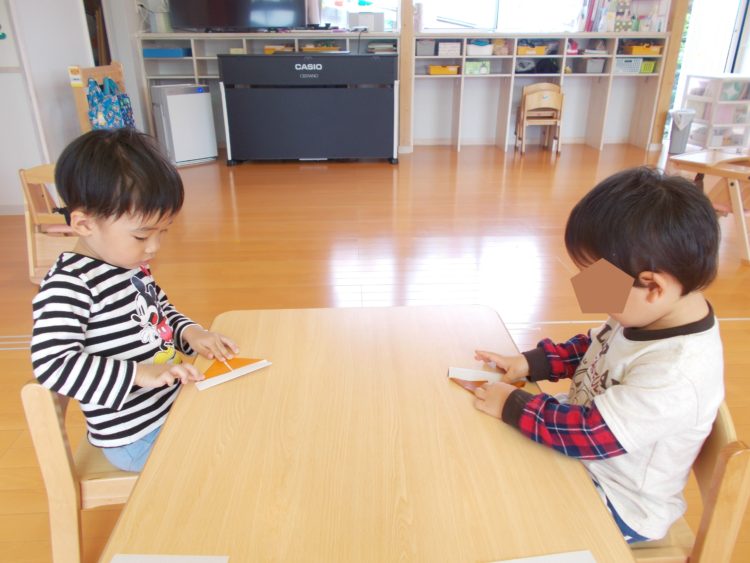 今日のうさぎ組さんとぞう組さんは秋の製作を行いました^^
