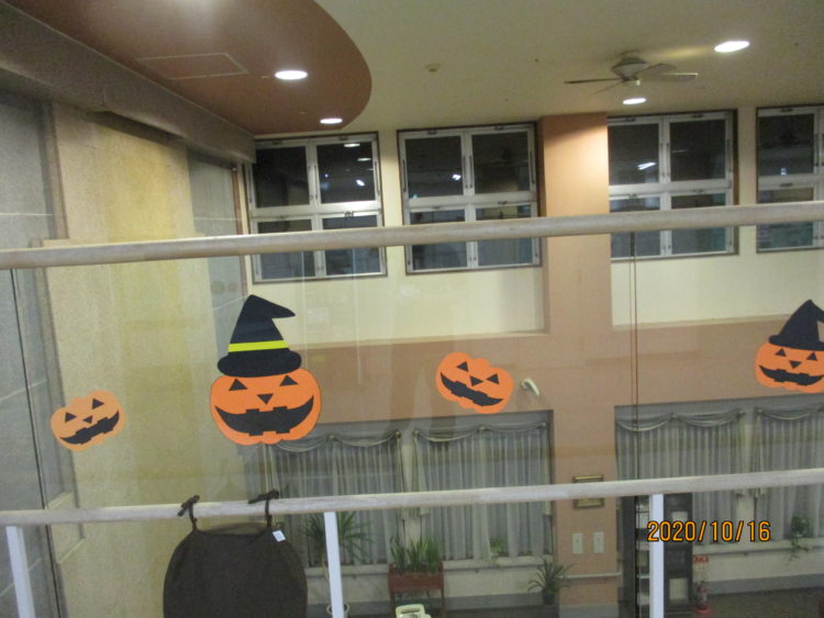 施設では、ハロウィンの飾りつけがされています。