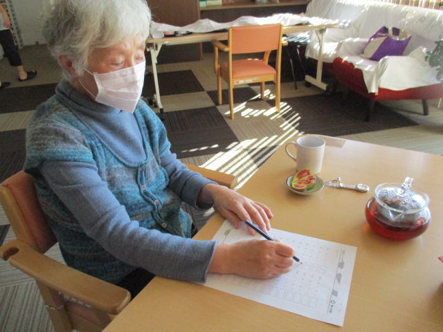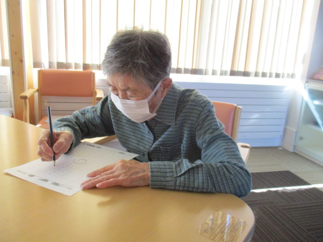 本日の小規模多機能ホームの様子をご紹介致します。本日は脳トレを行いました。普段は足し算を主に行っていましたが、今回は引き算にチャレンジして頂きました。