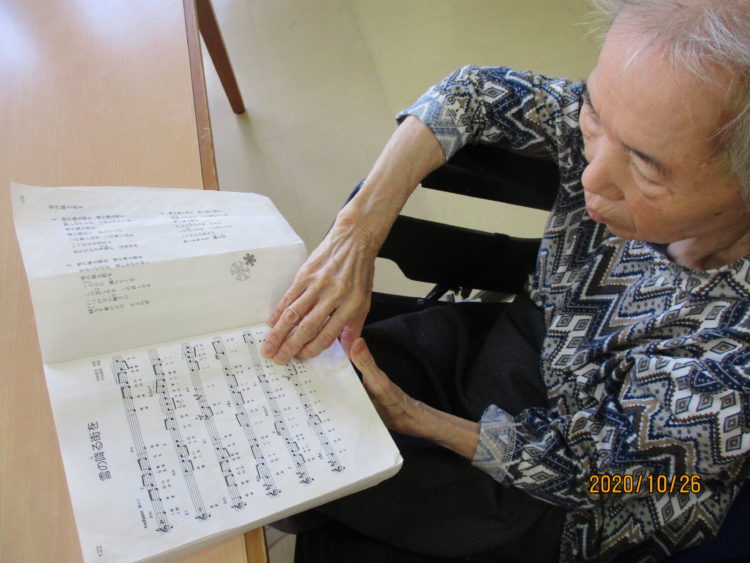 Y様が何かしらの本を見ていて何の本なのか聞くと「歌っこの本見てて勉強してらんだ」と眺めていました。