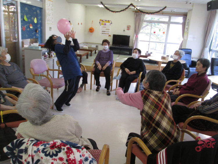 今日は風船バレーをしました!少人数だったので、皆さん輪になって♡楽しく出来ました。とにかく風船を上に上げてパス!繋ぐのも慣れてきたところで終了です!笑顔がたくさん溢れました。職員もハッスル!
