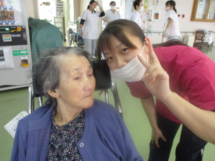 E介護員とJ様です。やさしい笑顔のお二人♪E介護員は夜勤明けですが元気にせかせか働いています!!