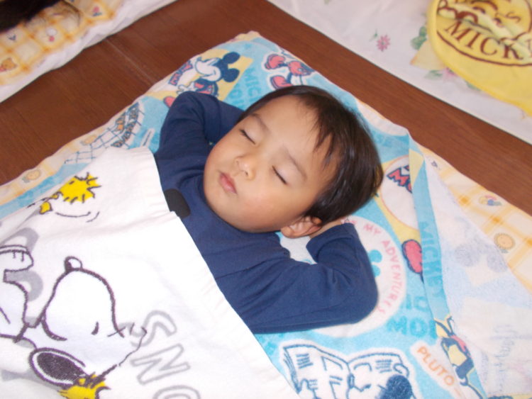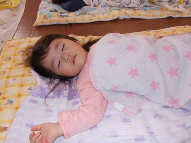 今日はぽかぽかいい天気♪お腹もいっぱいになった子ども達はお昼寝の時間です。