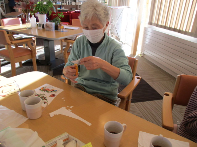 本日は来月のクリスマスに向けて切り絵作業を行いました。