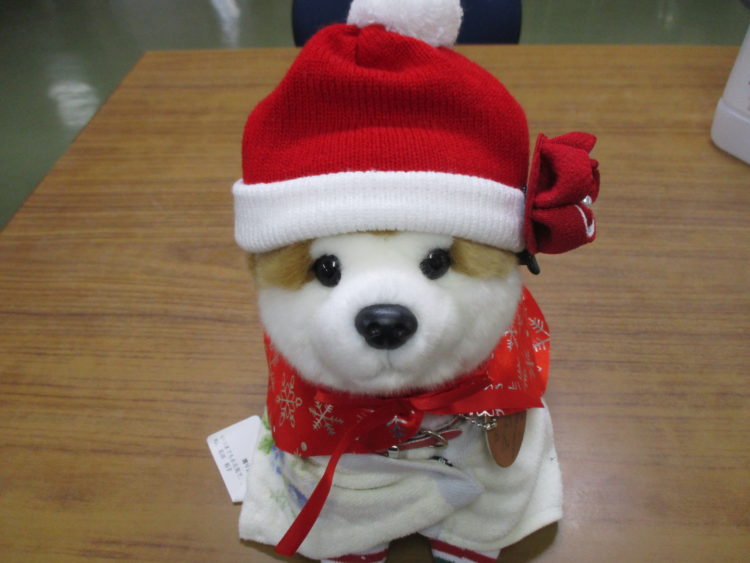 K様のマサルさんもK看護師がクリスマスの衣装に変身してくれました(^o^)つぶらな瞳が可愛いですね♪K様も「可愛くして貰っていがったな!」とたいそうお慶びでした(^v^)