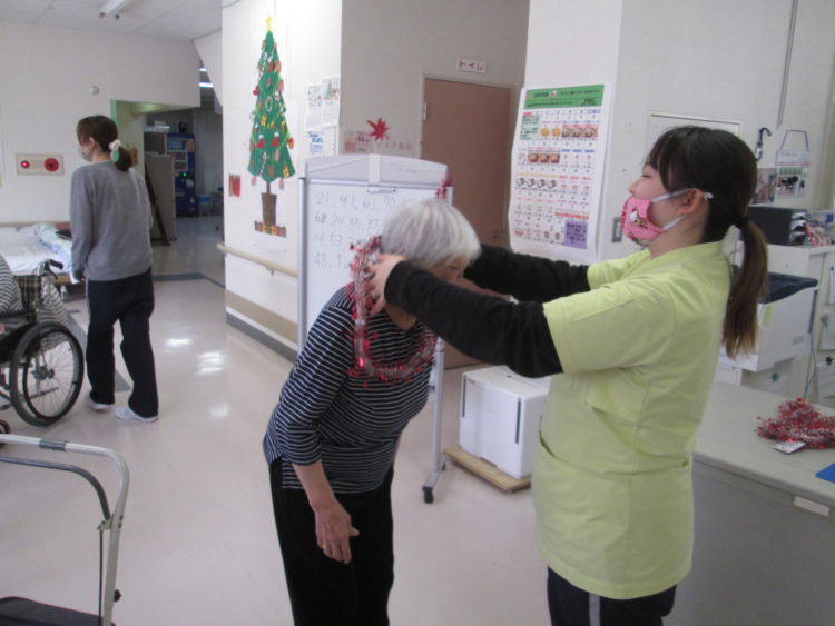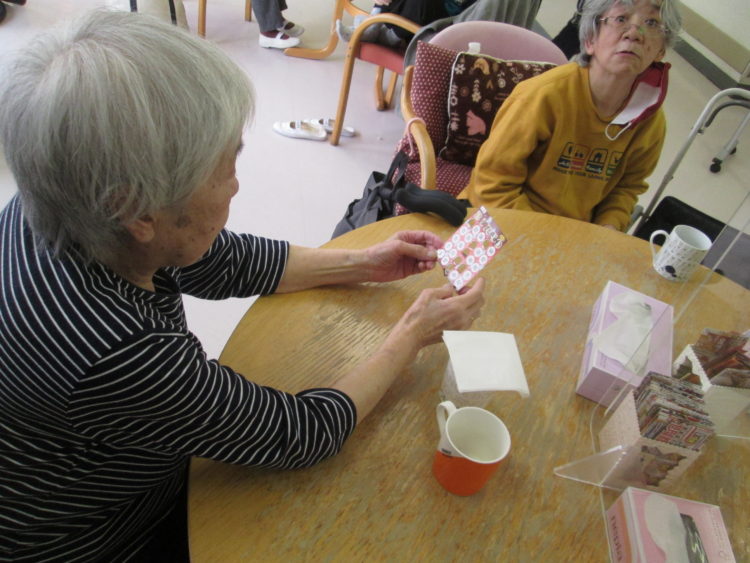 今日はデイサービスの忘年会です。ビンゴゲームを行いました。景品は??