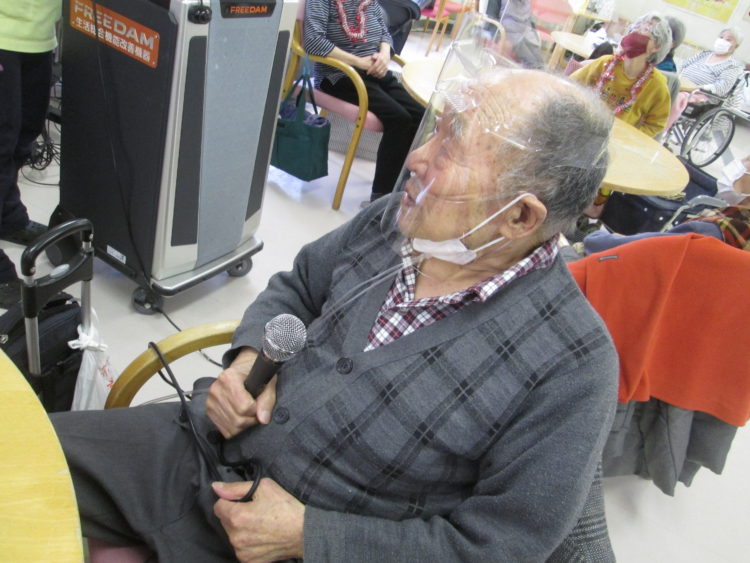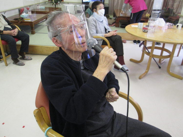 ゲームの後は、カラオケを行いました。久しぶりで皆さまうれしそうでした。