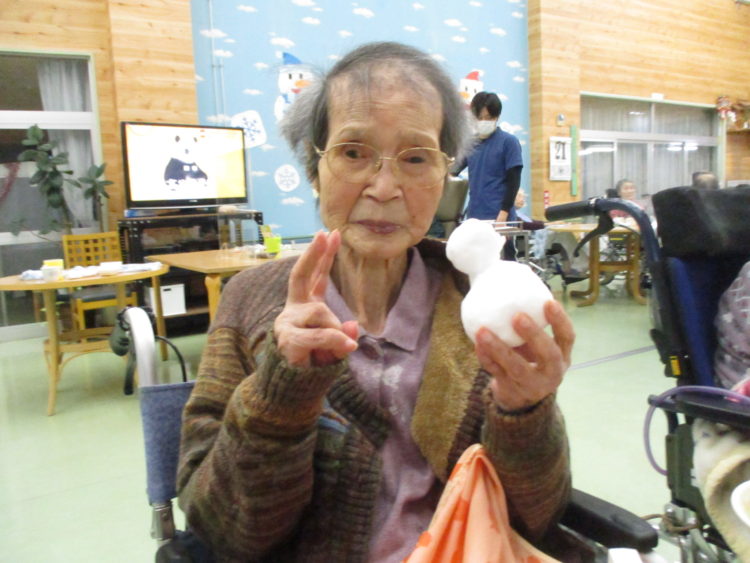 外に積もった雪で雪だるまを作り、お客様にお見せし触ってもらいました。