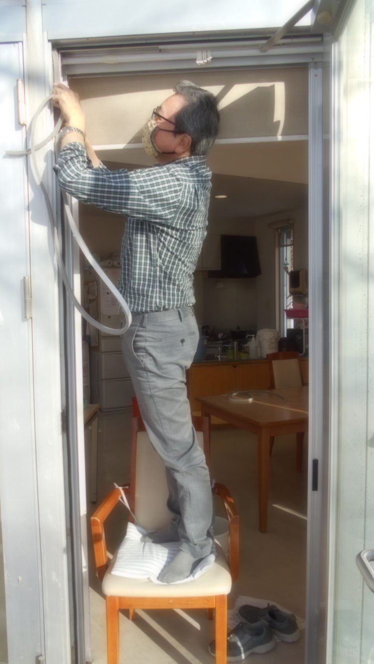 今日は、日差しも眩しく温かささえ感じられる陽気になりました。これはチャンスとばかりに、テラスの扉のすきま風防止のためのすきまテープを張り替えました。