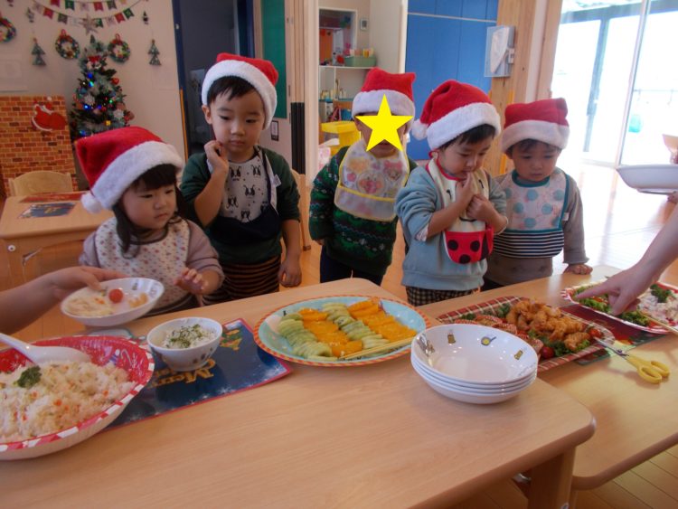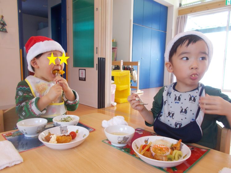 たくさん遊んでお腹ペコペコの子どもたち。今日はクリスマスバイキングです☆