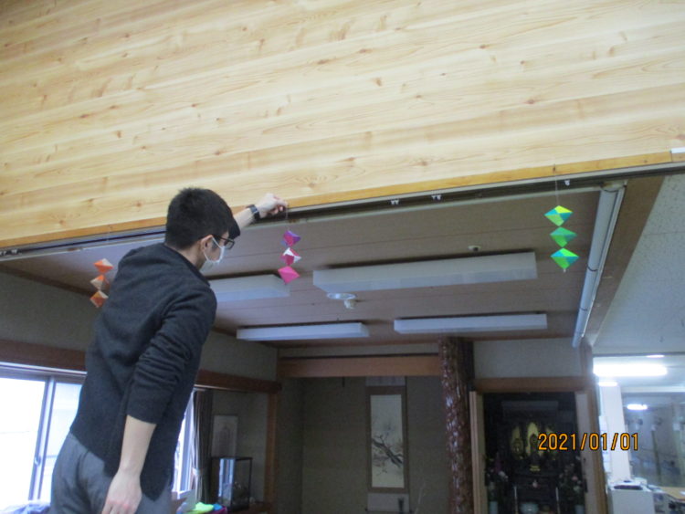 そんな不安に負けないよう、今は楽しみましょう!というわけでお客様が集まるホールに正月らしい華やかな飾り付けを準備しておりました。