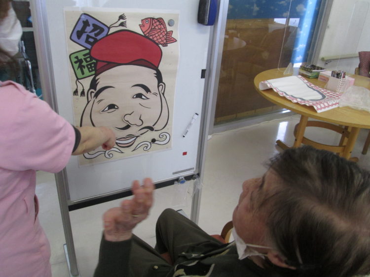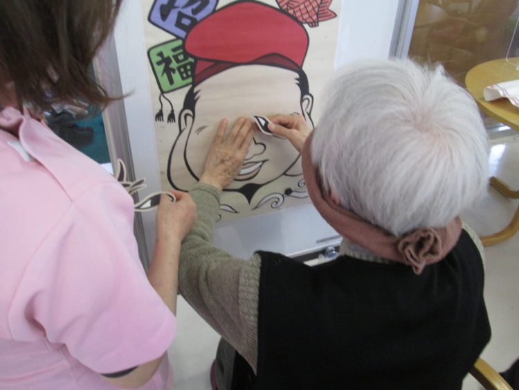 午後のレクリエーションは福笑いでした。笑う門には福来る💕笑福招来です。