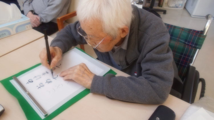 さて、今日のレクは、書初めを行いました。
