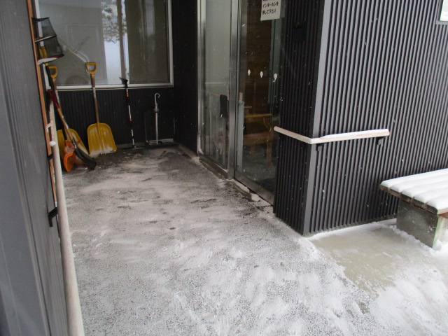 ホールから避難するにはスノコの有るテラス窓からの避難が考えられる為、最短避難ルートとして毎日除雪を行っております。