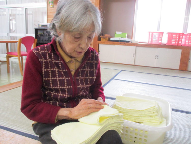 朝に使ったフェイスタオルですが進んで畳んでくれていました