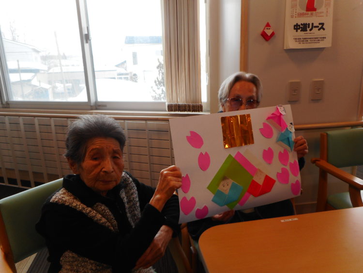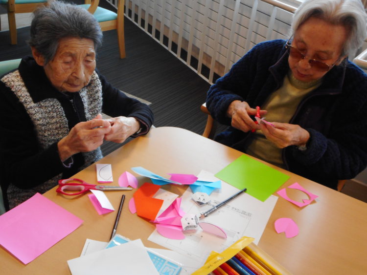 本日の余暇活動では、ひな祭りの飾り付け準備をしました。
