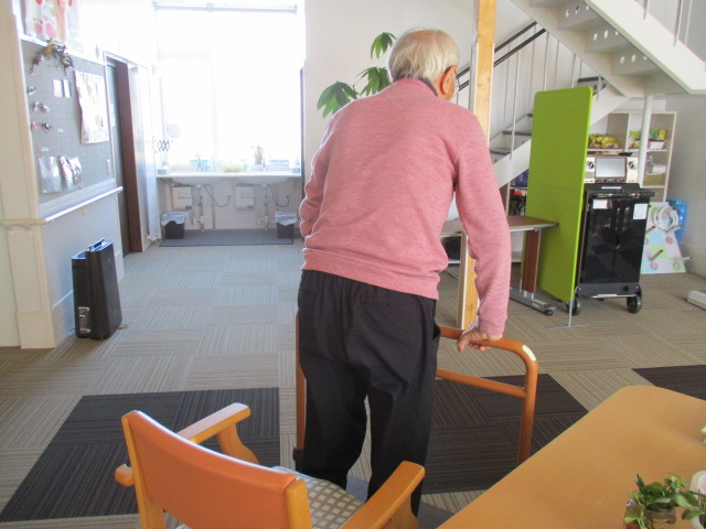 毎日当園に「体操をする為に来ているんだ」と話されるM様ですが、最近手足の曲げ伸ばしがスムーズに出来ないとの事でしたので、ストレッチを行ってみました。
