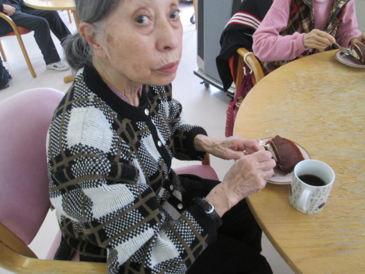 そしてチョコレートケーキを召し上がる時間となりました。一口食べて美味しかったのかこのどや顔をみせてくれたKH様。なにもきかなくてもご満足した様子が伺えました。今日はとても良い日になったと思います。