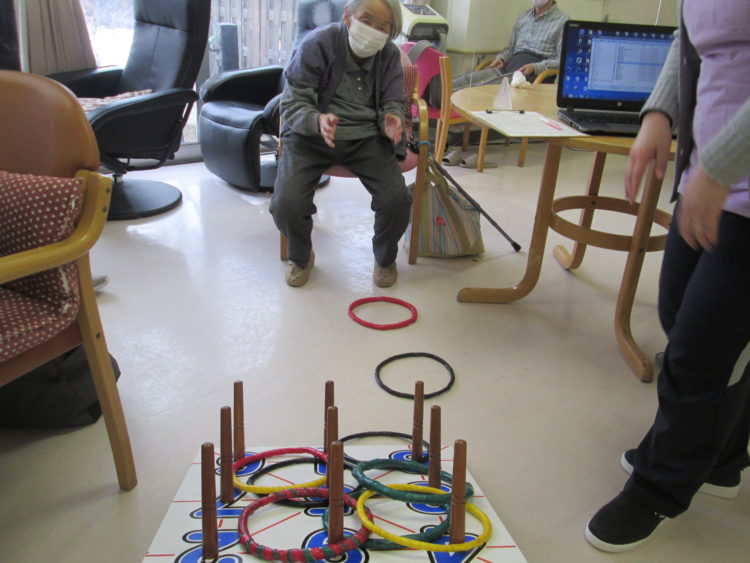 今日のゲームは輪投げを行いました。一位は仲良く二人でした!T様とA様です。