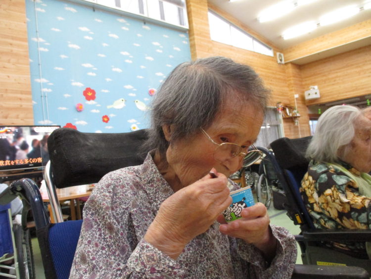 ヨーグルトを美味しそうに食べているK様。これからもごはんをたくさん食べて長生きしてくださいね!