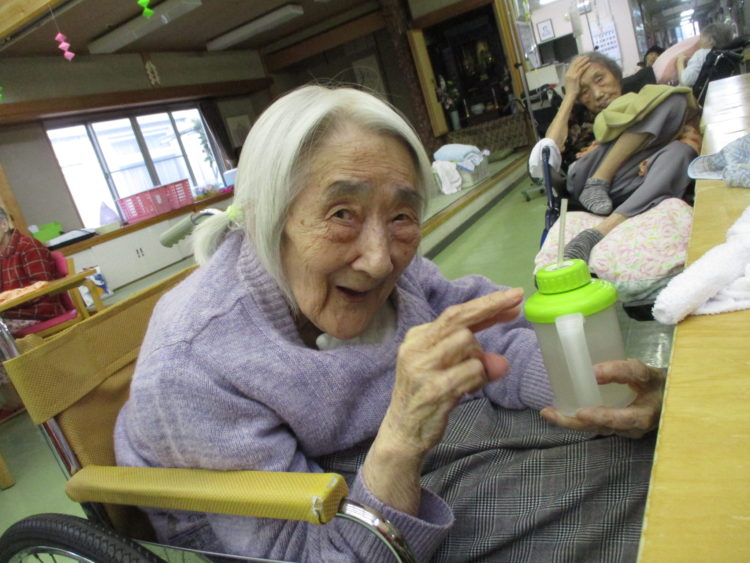 ジュースを美味しそうに飲んでいるS様。「このリンゴジュース美味しいね」と笑顔で話されていました!