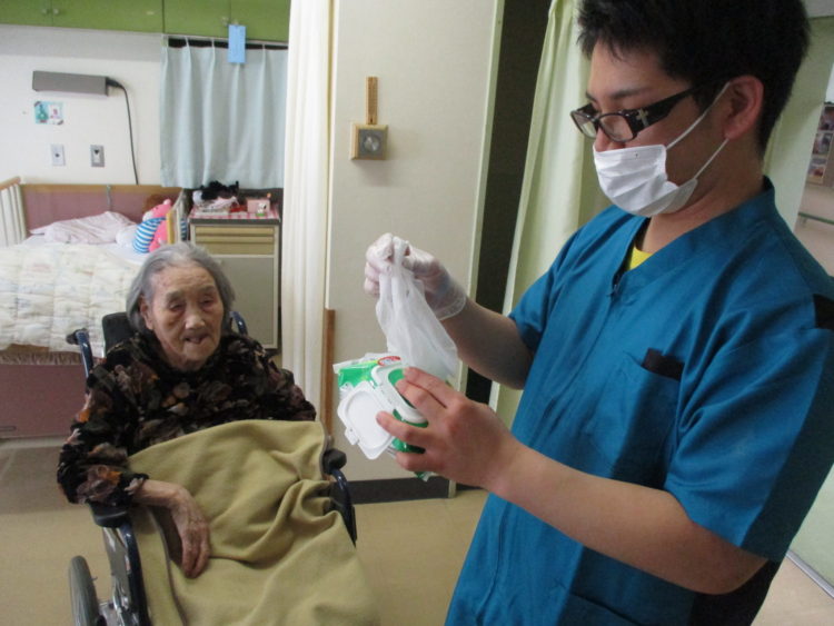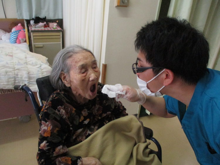O様に了解を頂き口腔ケアの様子を撮らせていただきました。