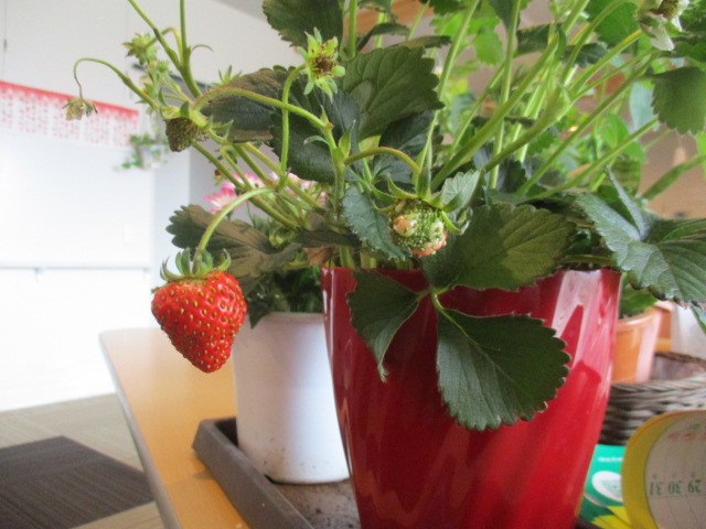 以前紹介したよつぼしイチゴが美味しそうに色づきました。