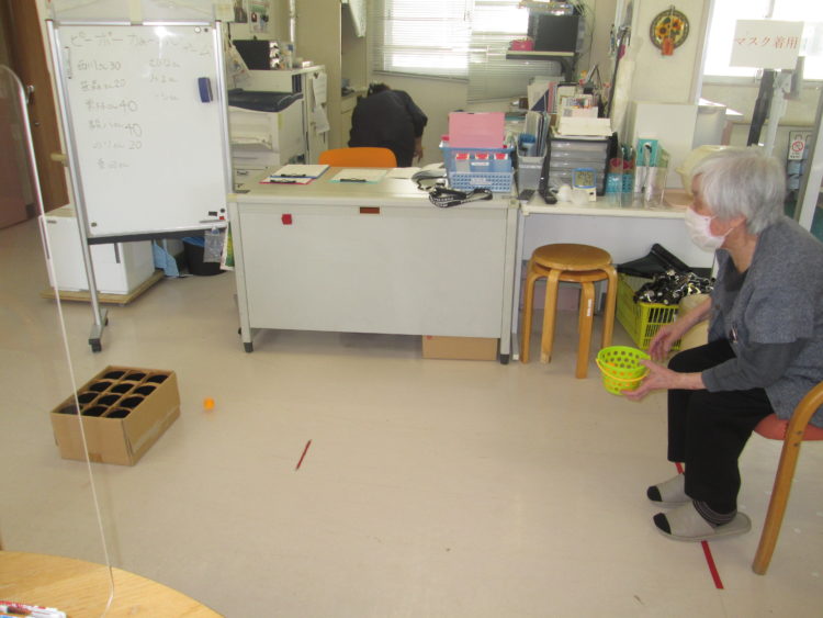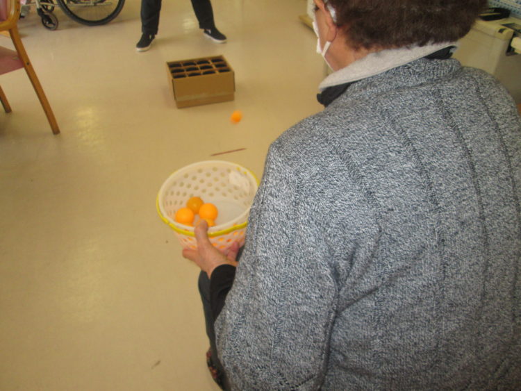 S様一生懸命ピンポン玉を入れようと頑張っております。