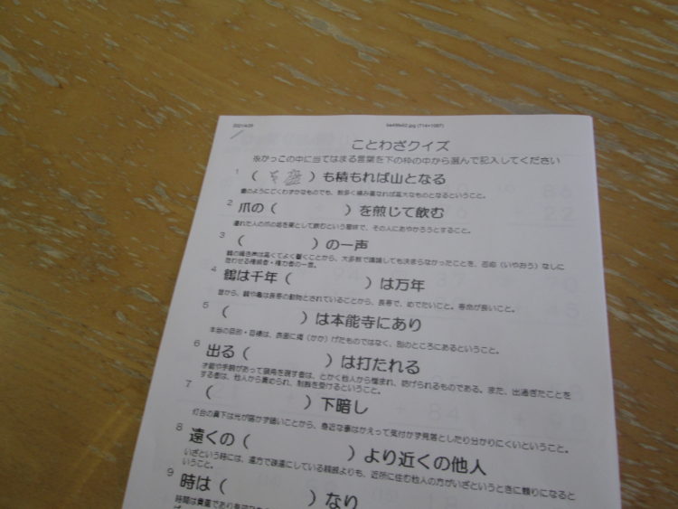 皆さん、こんにちは。今日のデイサービスの午後のレクリエーションはみんな大好き脳トレ・・・・・・・の時間です。今日は、プリントが5枚あります。ご覧のとうり皆様にはちょっと物足りないような感じもしますが。と思っているうちに全集中で皆様取り組んでいるおられます。その中で特にやる気スイッチ入ったお客様を発見しました。