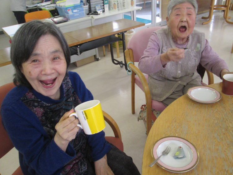 皆様、和菓子とお茶を飲んでとっても美味しそう!満足の笑顔を見せてくれました(^▽^)/