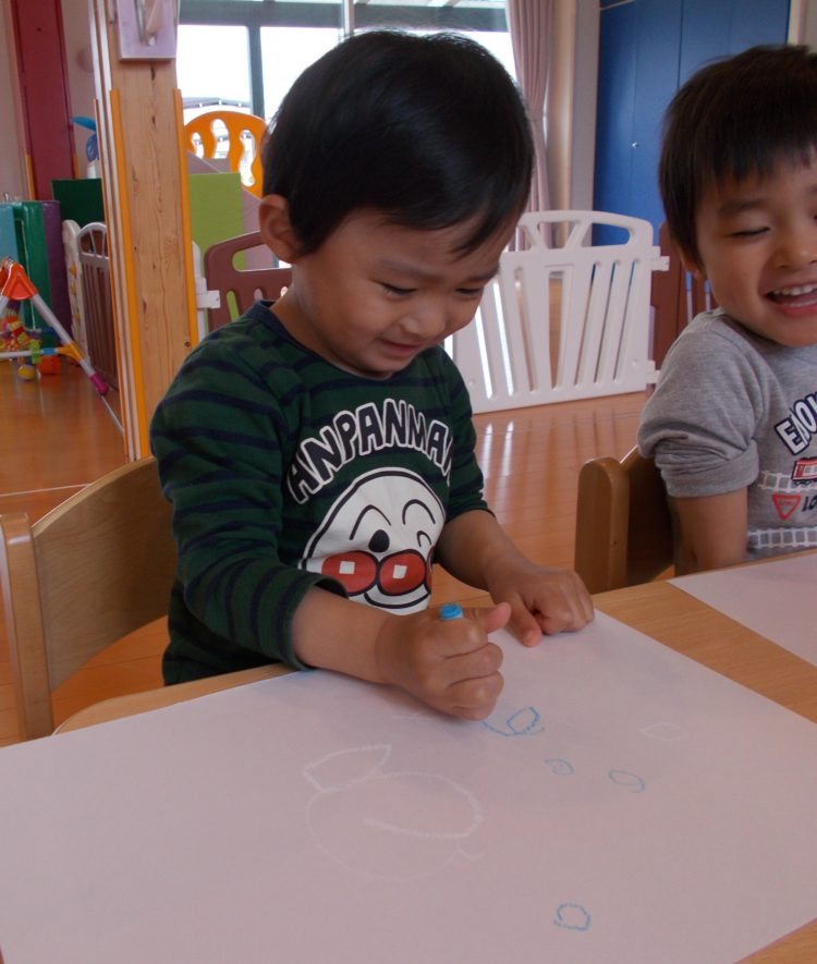 ぞうぐみのお兄さん達はクレヨンでお絵描き…とってもたのしそう♪