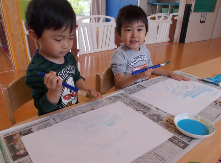 クレヨンで書いた上から絵の具を塗ってはじき絵に…