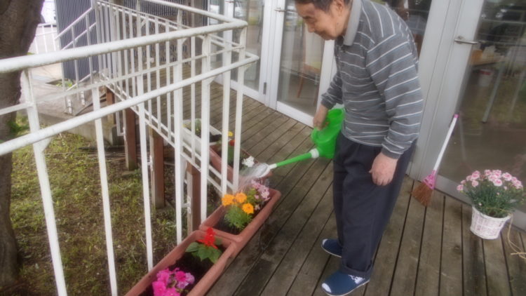 早速、プランターに植え替えると、入居の皆さまから「きれいですね」「華やかになっていいですね」など喜びの声が上がっていました。