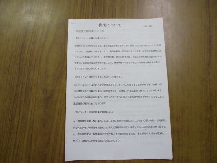今回の内容は排泄についてです!基本的なポイントから排泄介助を行う際の詳しい手順まで伝授しました!