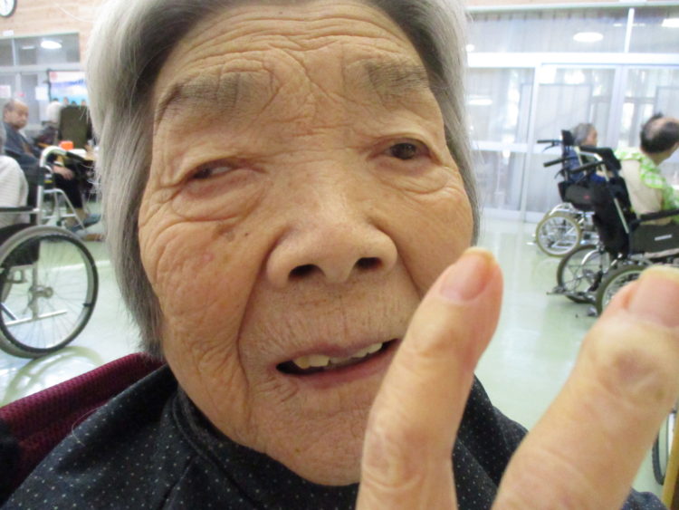 こちらのS様は、朝から元気良く、職員方とお話をするのもお好きなようです。カメラを向けると、ピースしてくれました!