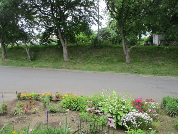 本日はN様の希望で施設内で花見を行いました。庭には夏の花々が元気に咲いていました。