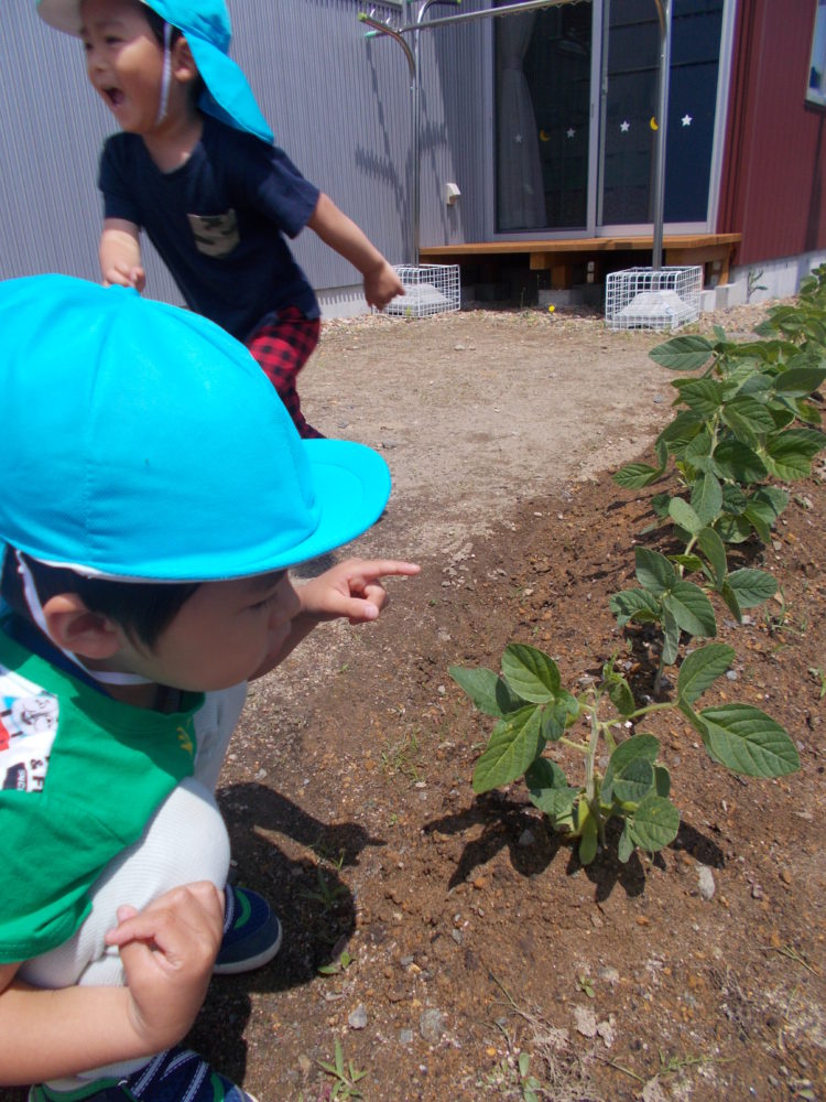 お野菜の観察をしたり、すべり台やしゃぼん玉で遊んだり、全員でかくれんぼも楽しみました。