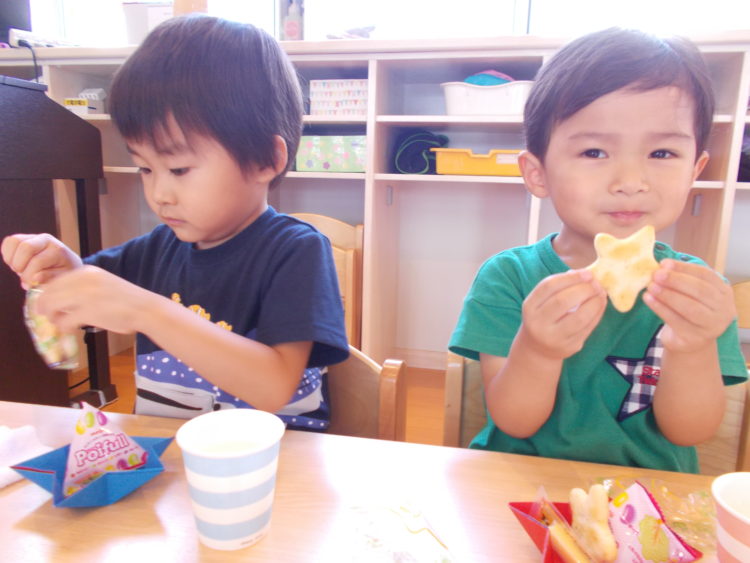 まずは七夕おやつ♪お星様のお皿に乗ったおやつに大喜びの子ども達でした^^