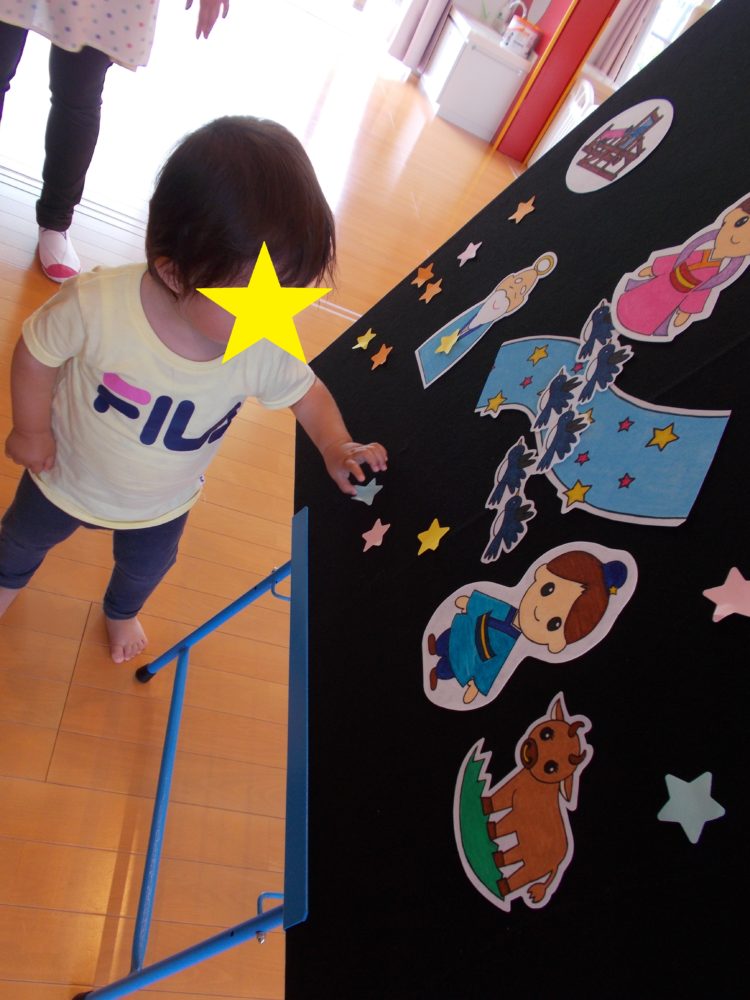 七夕集会では、七夕の由来のパネルシアターを見て、星あつめゲームをしました☆