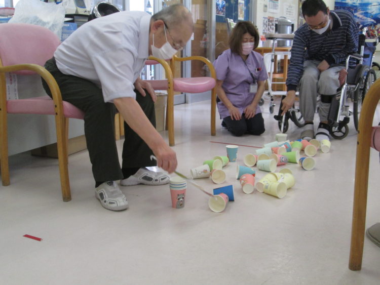 午後のレクは、ゲームレクとして【コップ拾いゲーム】を行いました(^^♪