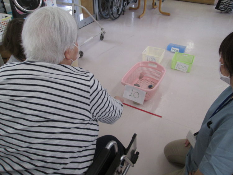 その後は、お手玉を点数がついたカゴに入れて点数を競うゲームを行って頂きました!