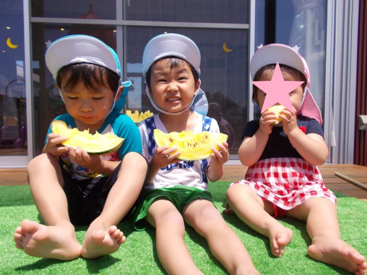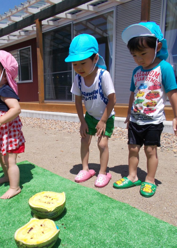 暑い夏、お友だちと食べるすいかはとっても甘くて美味しかったようです☆